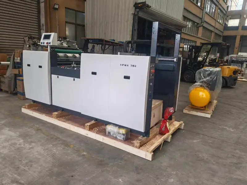 Csomagoljuk az YFMA-760-atAutomata előbevonat lamináló gép, Végül faládába csomagolják.